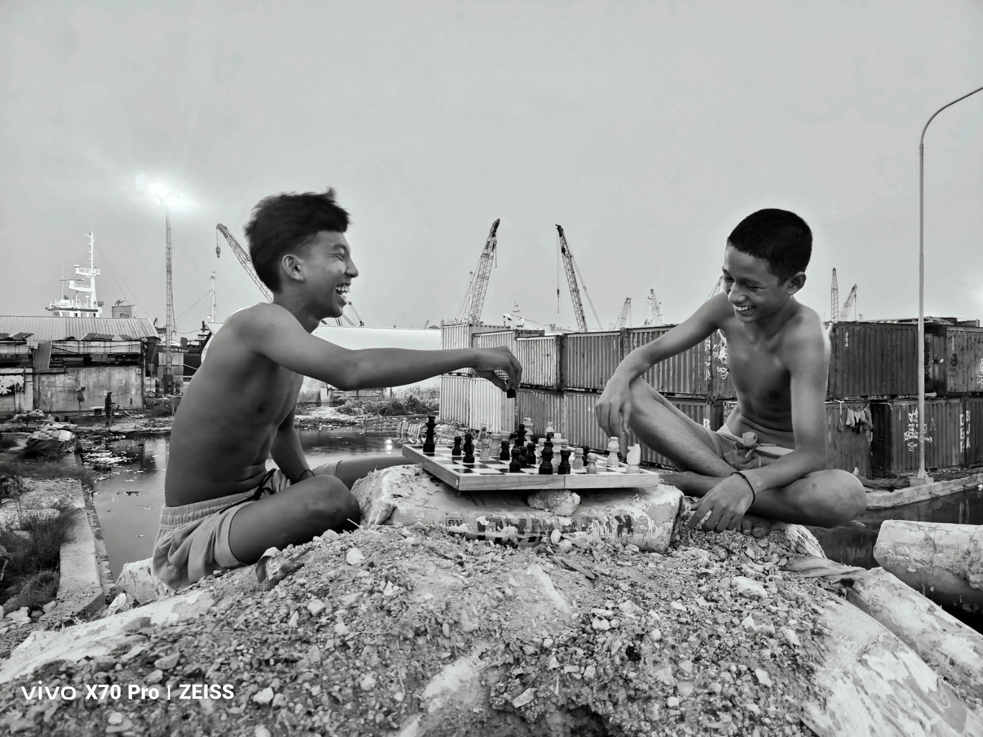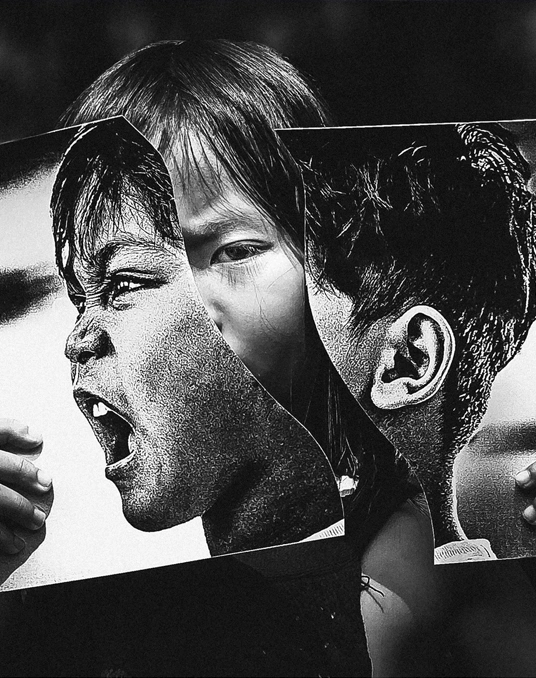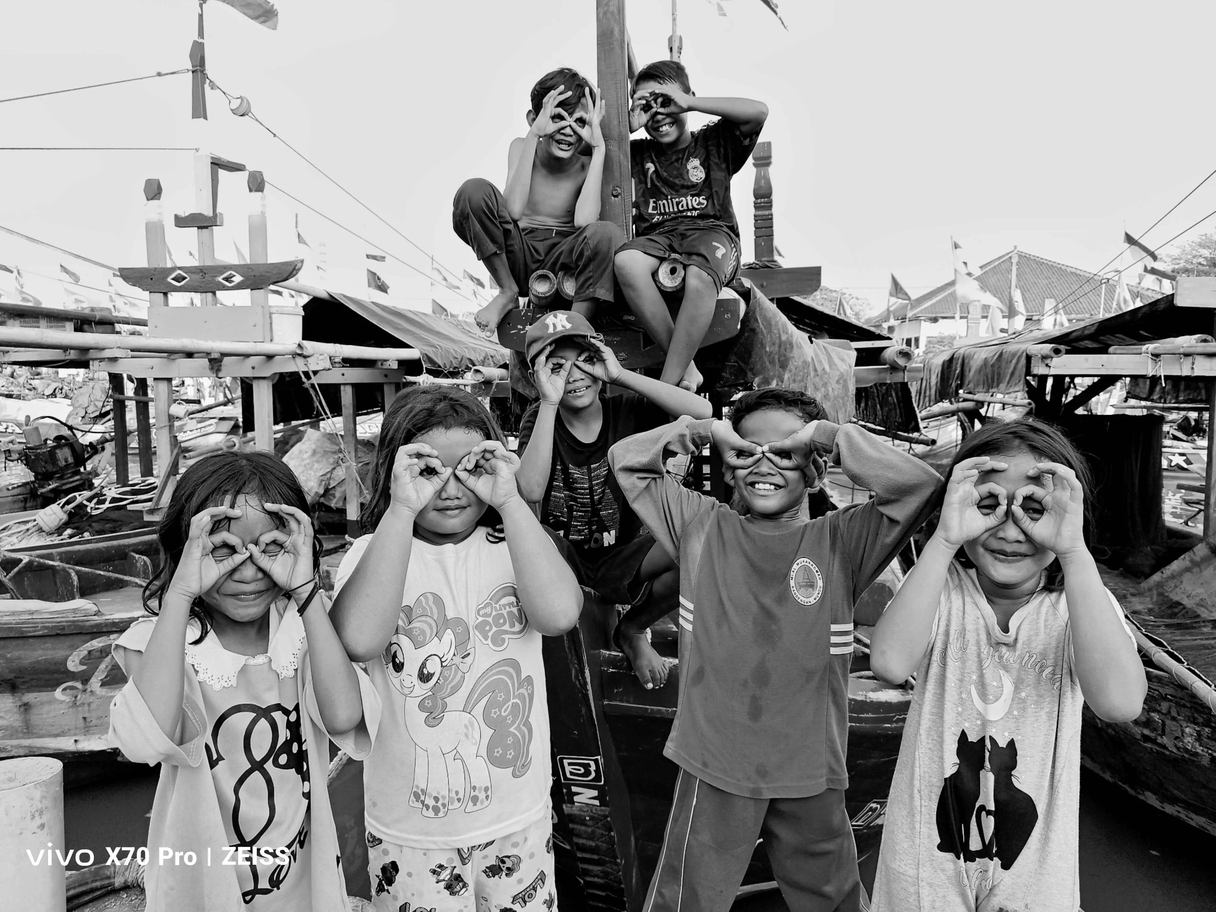 Potrait hitam putih anakku dengan sebuah foto saudaranya memberikan kesan dua dimensi dengan ekspresi yang berbeda.