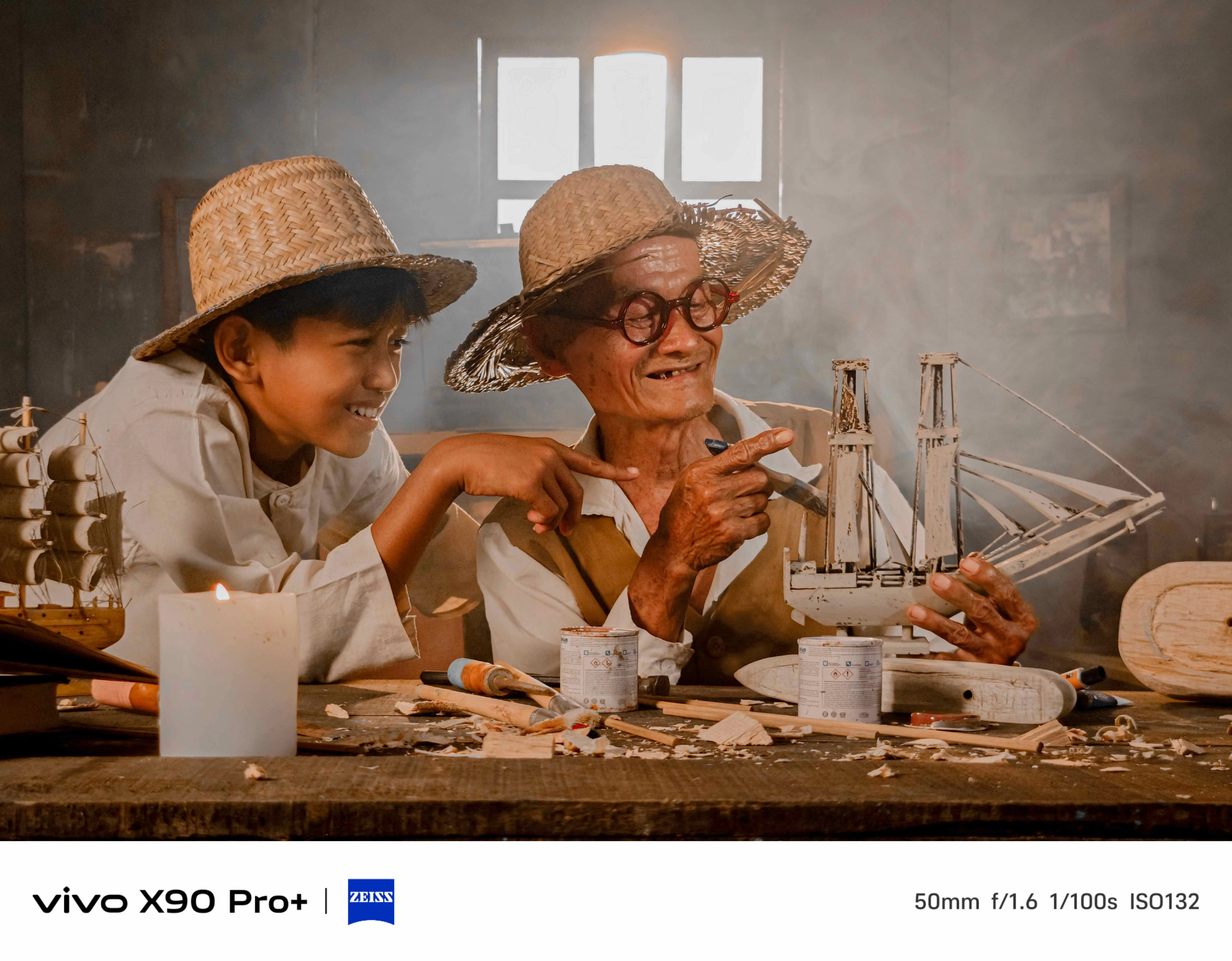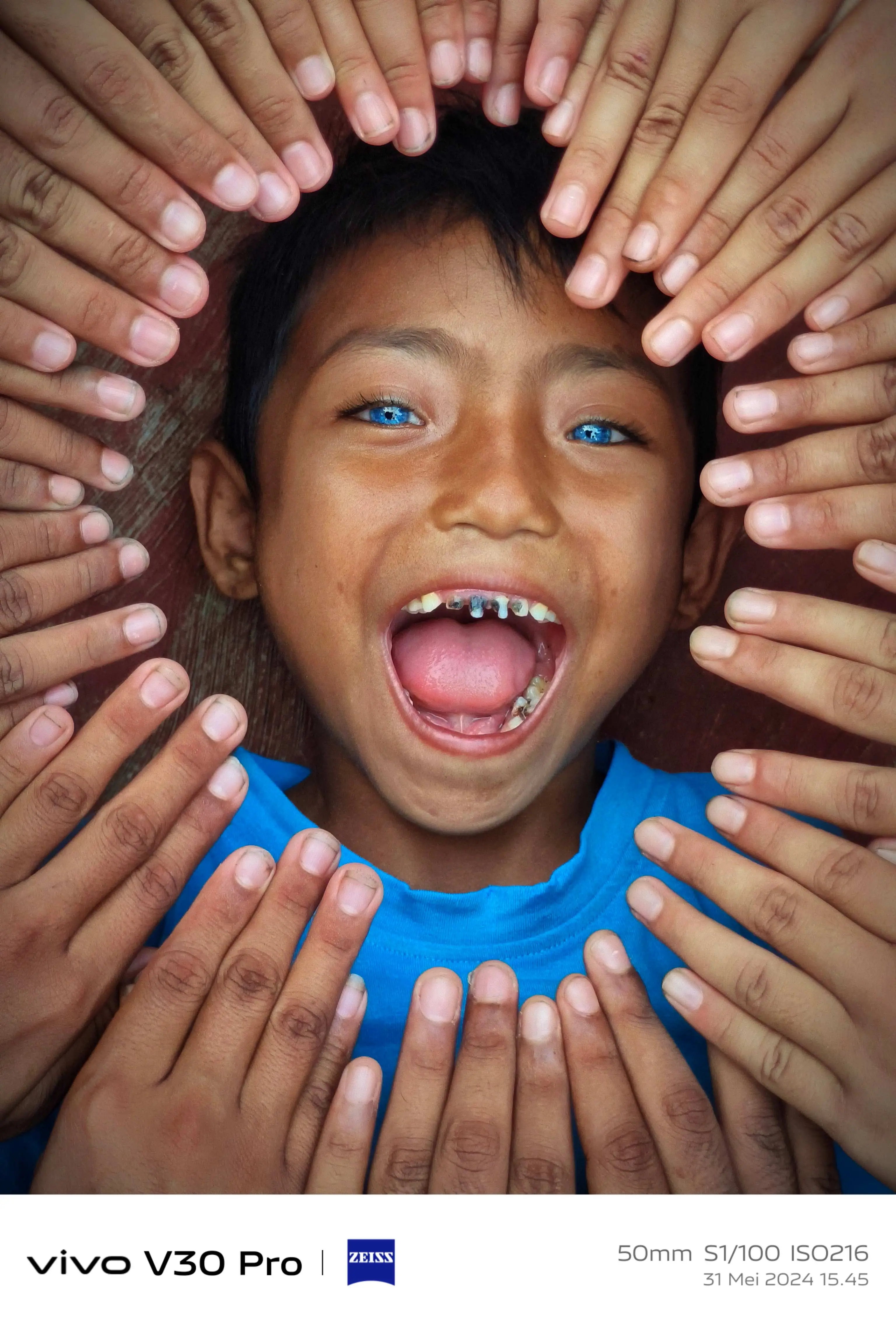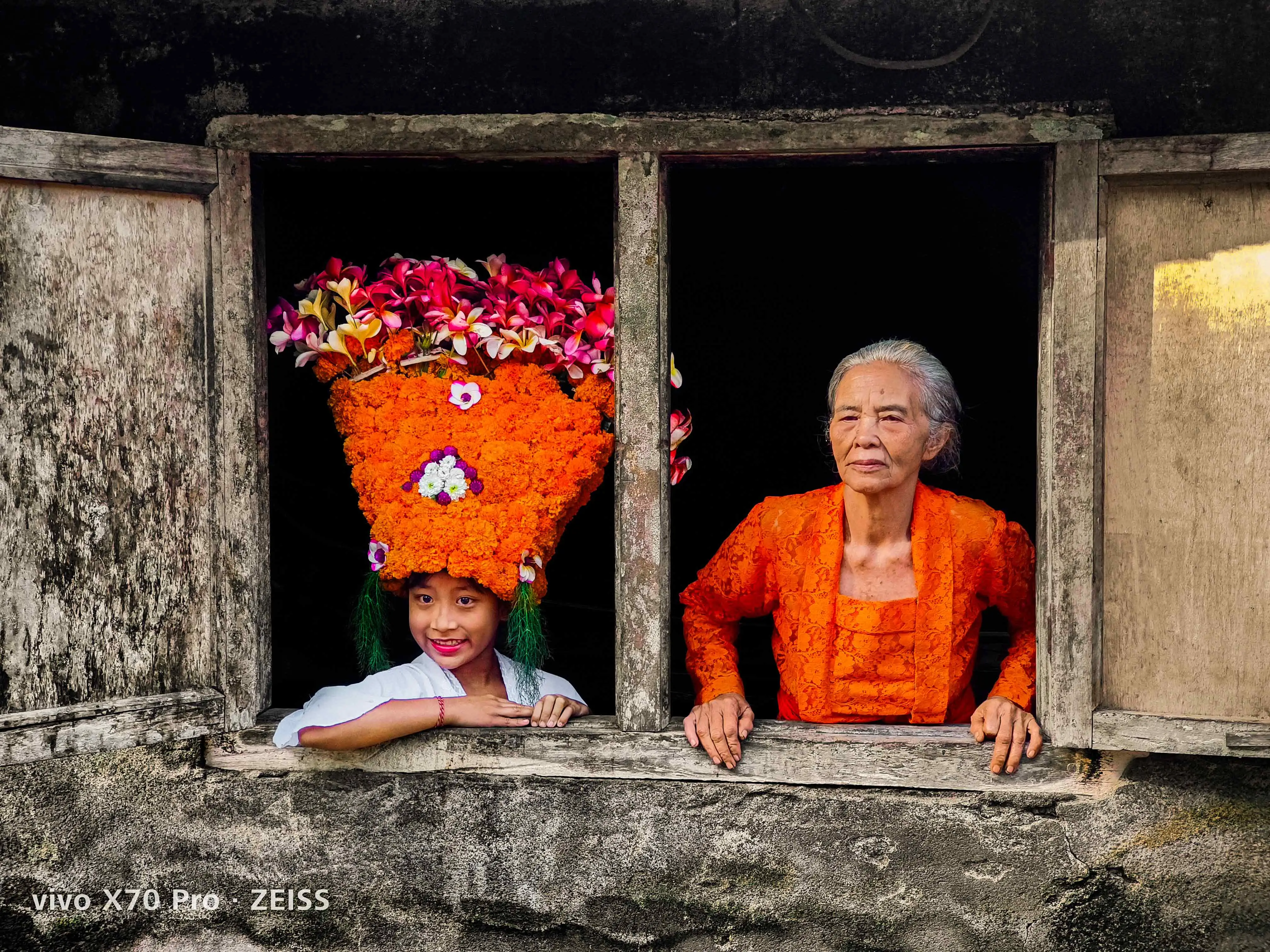 Potrait hitam putih anakku dengan sebuah foto saudaranya memberikan kesan dua dimensi dengan ekspresi yang berbeda.