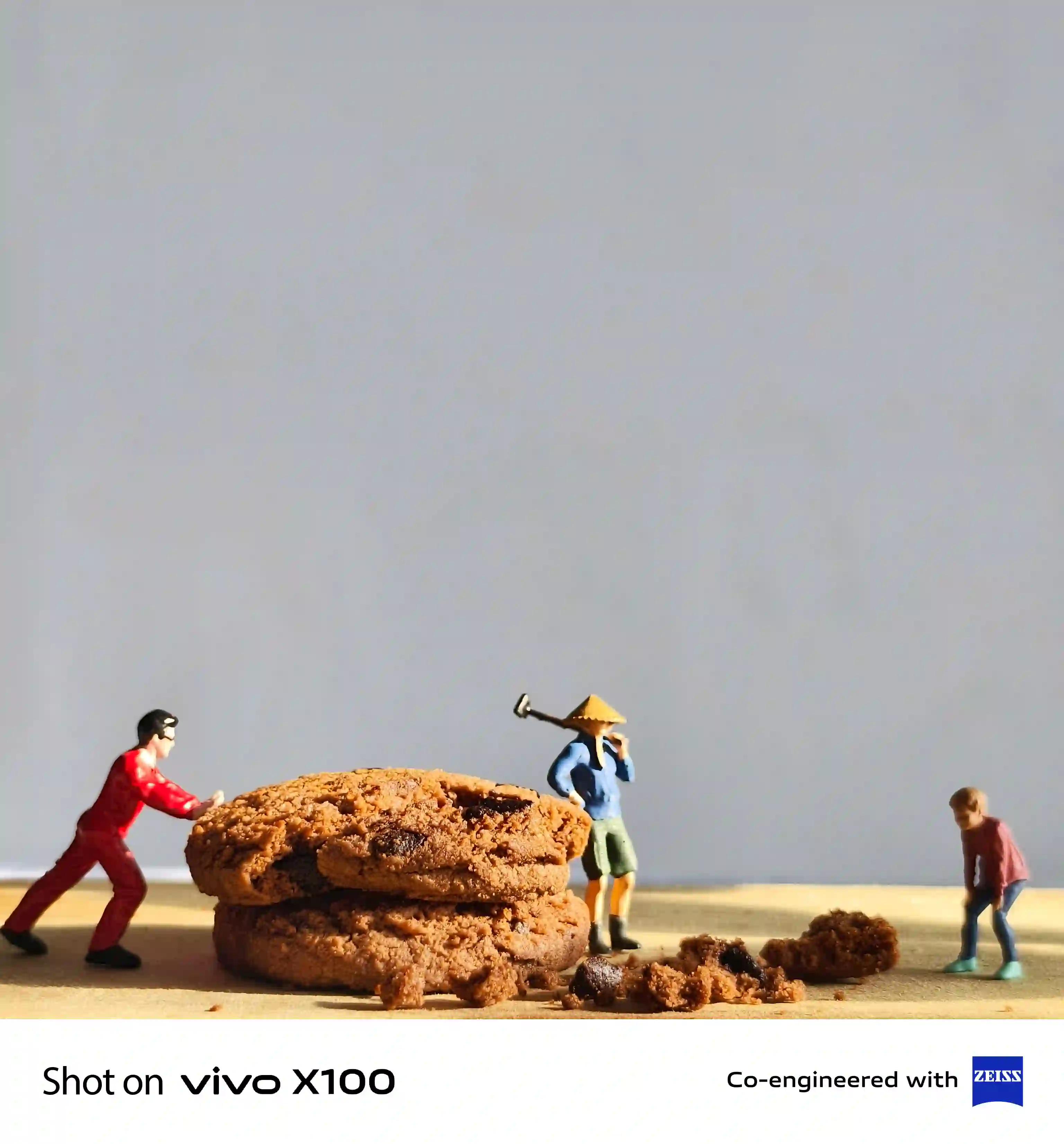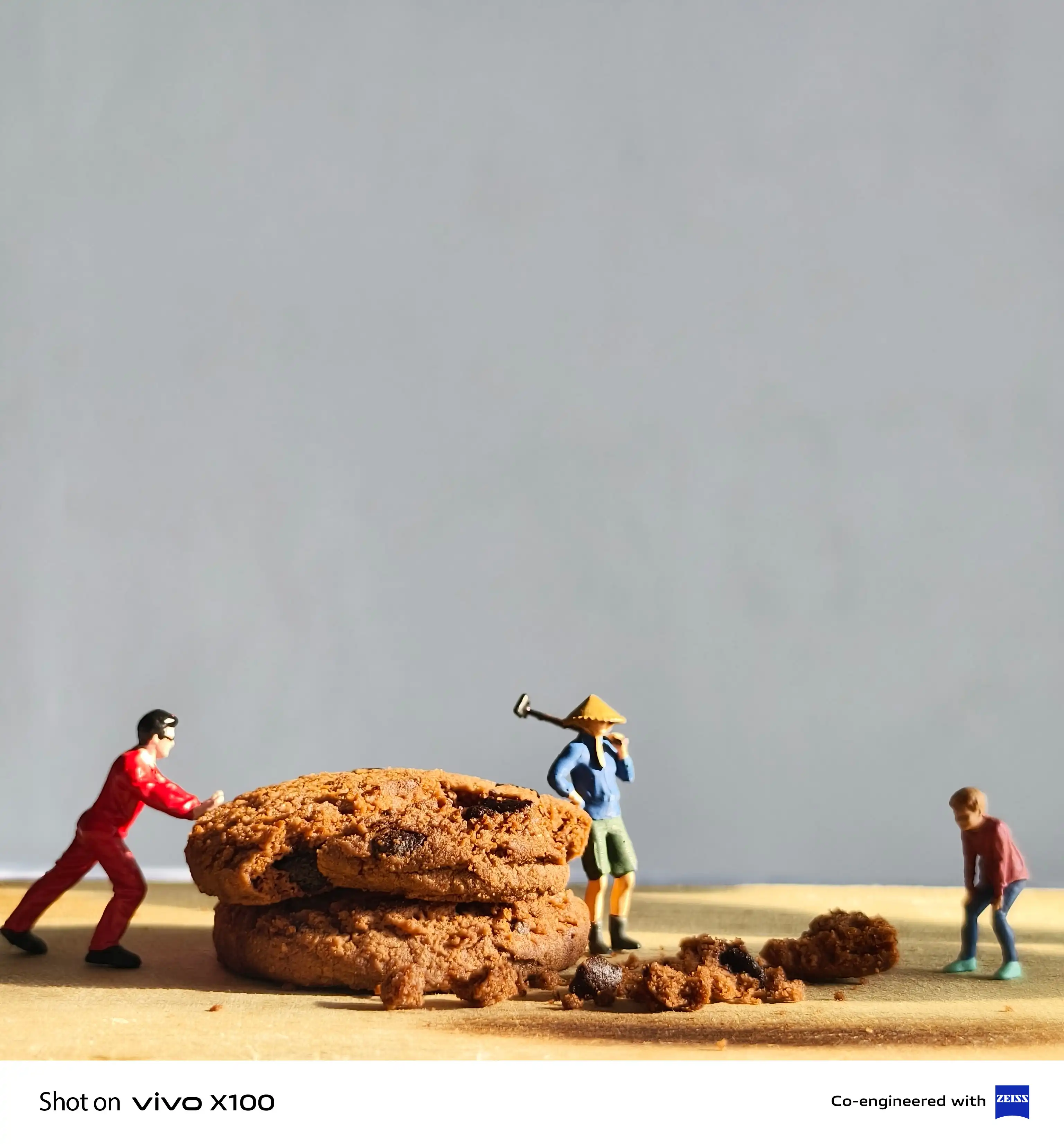 Miniature People at Work with Chocolate Cookies